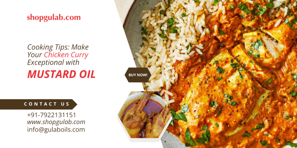 Mustard oil’s strong flavor complements chicken curry, adding a unique depth and richness that enhances the overall taste.